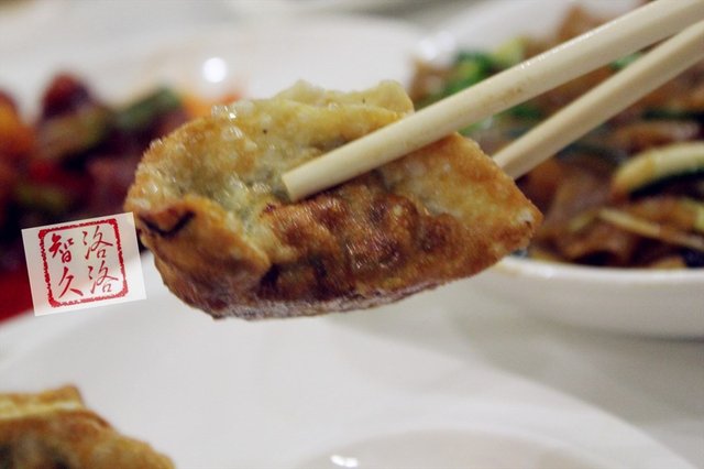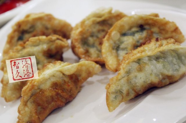 香煎韭菜饺,煎的火候尚可,配著粥一起吃~