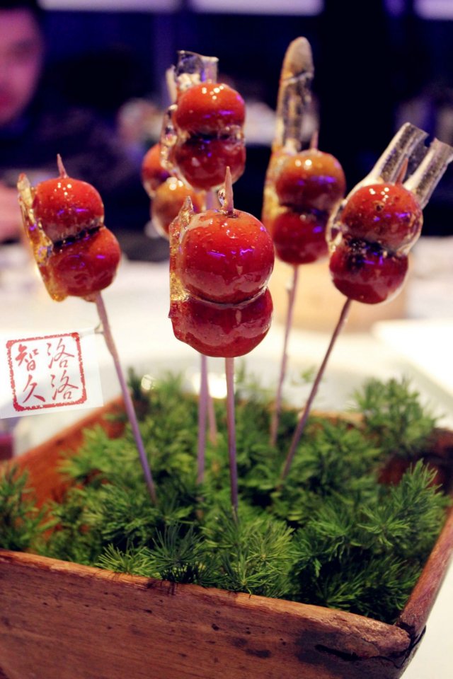 餐後附送的 糖葫芦+餐後水果金桔一盤,意境倒是很好~
