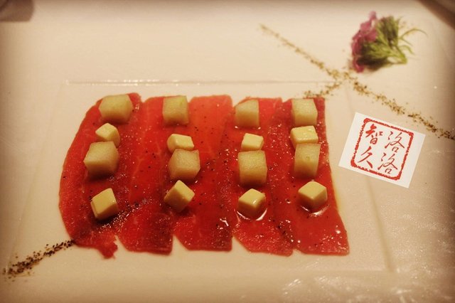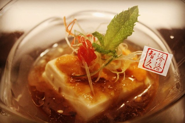 前菜#腐膽#豆腐配海膽,比較多見的冷食,豆腐冰冰涼涼的滑入口腔,只是海膽品質略顯一般個頭甚小!