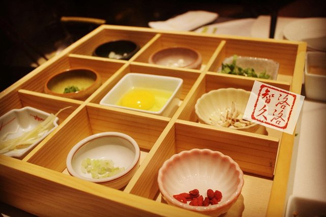 點小青龍的確很不錯,特別是龍蝦的頭尾製作成黃金泡飯,燙燙的湯頭很是暖胃~九宮格的調料品蠻有噱頭的!
