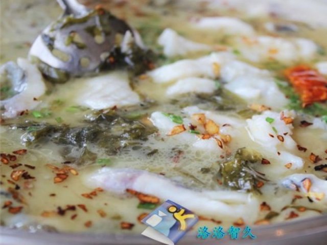 因为这个是酸菜鱼锅嘛,故无鱼头的,只有鱼身~(鱼身的价格低于鱼头)因为鱼片抹了生粉~吃口蛮嫩的,只是刺过多,还有就餐完后,子部老干的~回家后喝了好多的水解渴~看来味之素放的过多了!