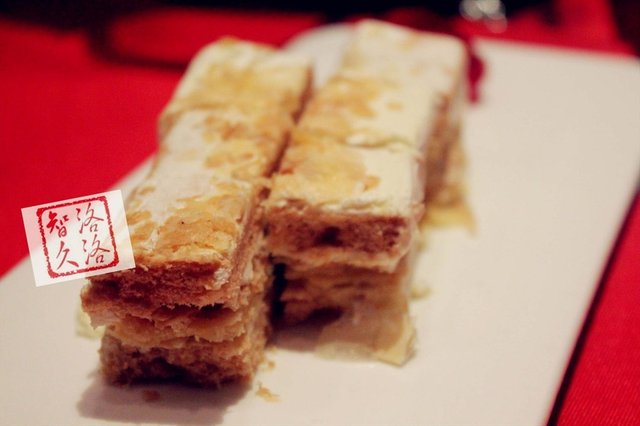 拿破侖:有些像花生酥了,cream不是很多,屬於動物奶油,隨便切切~川菜館做西點總覺得欠些火候~