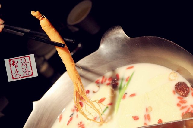 白湯裏還有超長的人參,真真是比手掌還長呢~