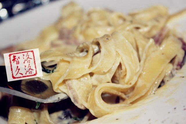 Fettuccine Carbonara 奶油培根宽面 很不錯的意面~是寬面,奶油味道濃郁,卻不膩口~