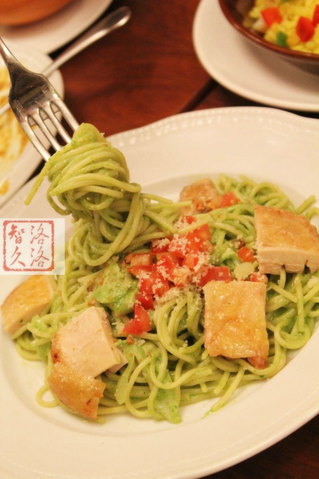 健康菠菜沙司雞肉意面,綠悠悠的色澤賞心悅目~意面可口Q彈,sauce濃郁入味,好生喜愛~