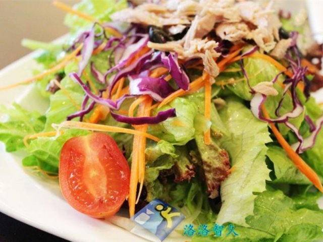 什锦生蔬配金枪鱼沙律:罐头装的金枪鱼,蔬菜新鲜度一般,有些色泽略有灰暗,当爽口开胃菜将就品尝~