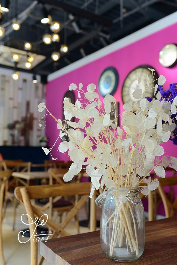 很久没来逛一逛永新坊,想不到一场突如其来的大雨让我走近了它,特别的名字总能让我在瞬间毫不犹豫地锁定。迎面撞见整墙的艳色桃红,在各种干花与盆栽的簇拥下,整个空间妩媚得如同妙龄少女,让快成落汤鸡的我一下子心情明媚了起来。