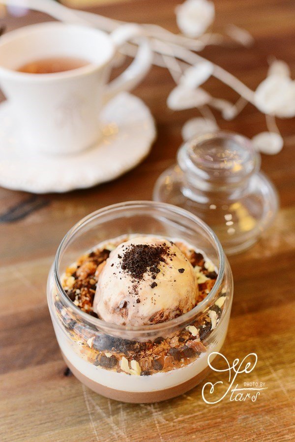 夯实的巧克力冰激凌奶冻,撒满可可薄脆,奥利奥细碎,杏仁碎末,还有法芙娜巧克力碎,最后顶上费利罗巧克力冰激凌,贵气得如同金字塔尖的绅士,浓郁而深沉的巧克力味,相信无人不爱。如此品质的诱惑,she的眼中依然只有he。