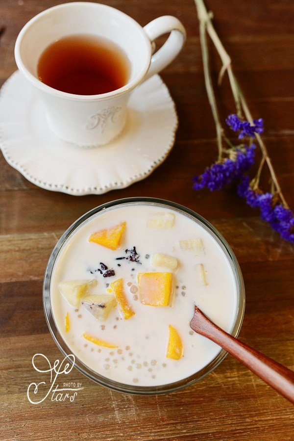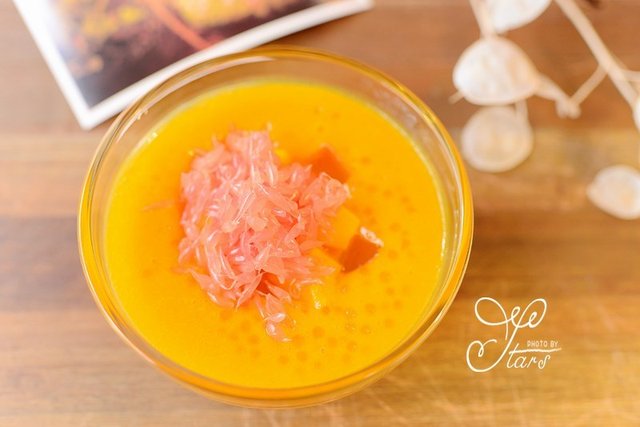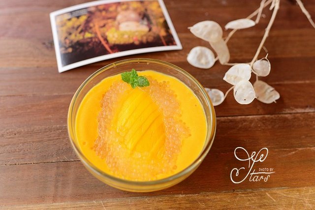 那浓浓的芒果浆里闪现着大颗的芒果肉,甘甜绵糯的口感唯有熟透了的新鲜芒果才能成就,艳红的西柚颗粒酸甜而又多汁,合着Q糯的小西米,这份实实在在的甜蜜,仿佛久违的初恋滋味。