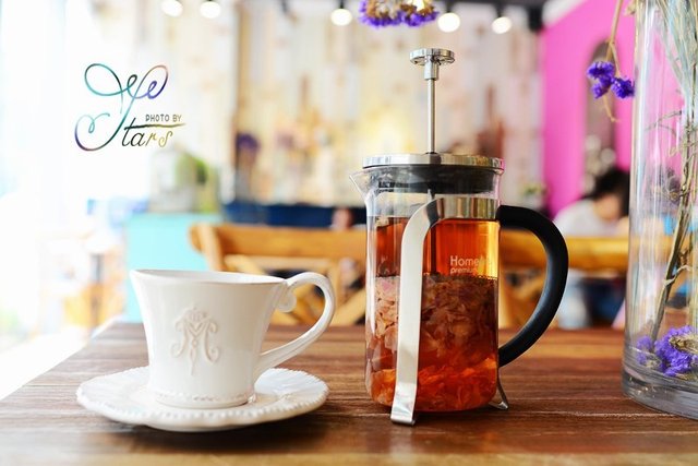 重重叠叠的玫瑰花瓣,半悬在通透的玻璃茶壶里,随着滚烫的沸水沉沦起伏,渐渐地茶汤菲粉,如同洋溢在爱河里she的脸颊,随着茶汤跃入精巧的浮雕茶杯,幽幽的花香便静悄悄地弥漫,浅浅的甘甜滑入喉底,一解这干涩的秋燥。