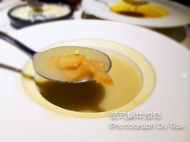 汤汁很浓稠,里面有蜗牛肉块,味道也不错