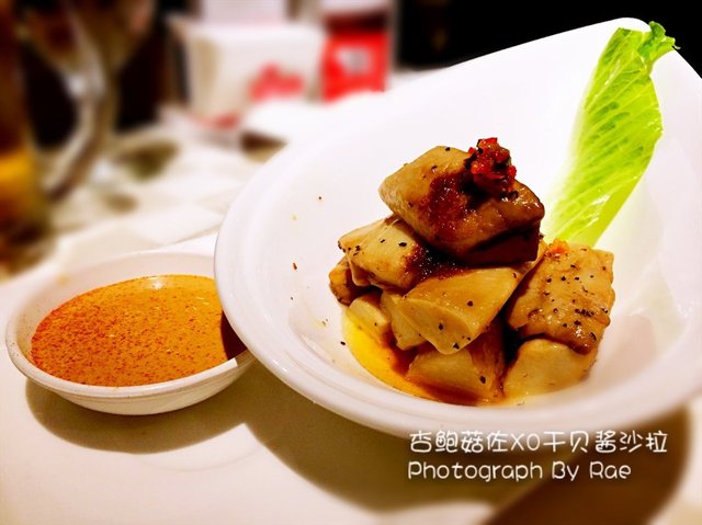杏鲍菇的韧滑口感,另外配上了特制的干贝酱非常好吃