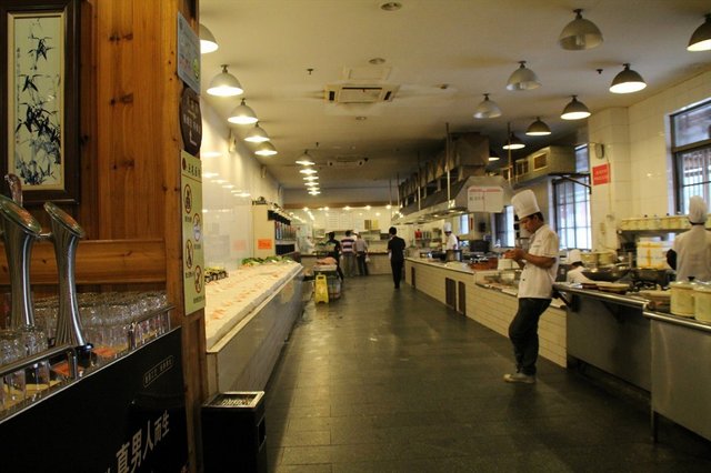 门口有非常大的停车处,走进大堂可以看见点菜区,是一个跟厨房连接在一起的,看到厨师们忙进忙出你绝对会对他们的菜放心起来