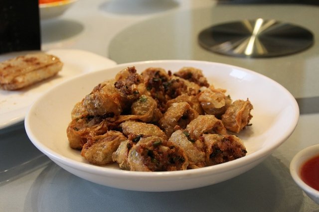 包裹着肉糜的豆皮,被炸的很松脆,藕又不是很油腻的食物,所以也很适合做点心
