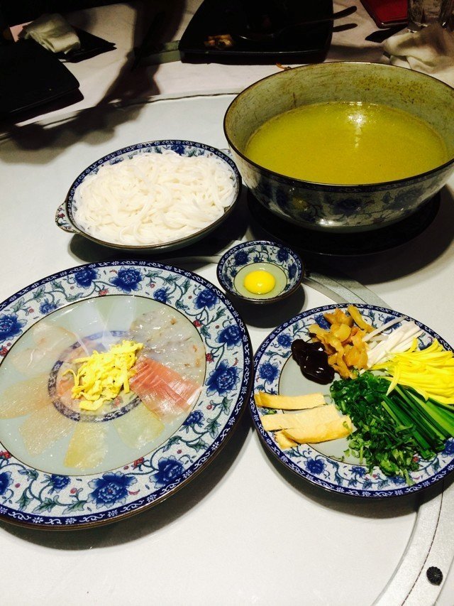 叫了一份米线,大家分着吃,88元的价格不算便宜,配菜也不多,但是汤头真鲜啊,服务员为我们分成了小份,里面还有虾,虽然有点油,可是吃起来好香啊