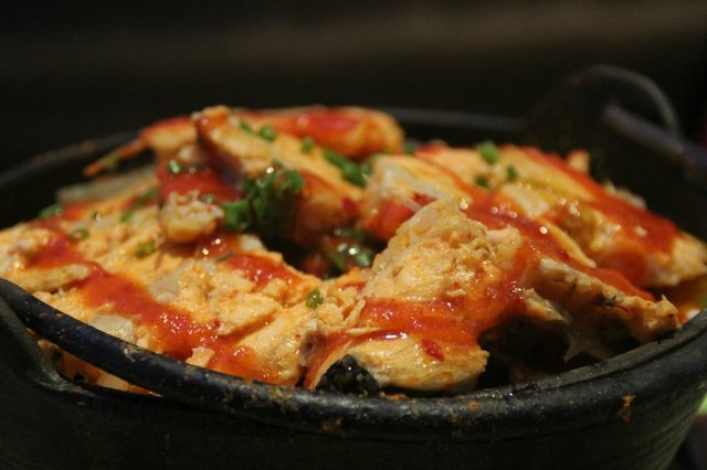 泡菜三文鱼锅:不能吃生食,可是又馋三文鱼了,点这个解馋正好,三文鱼蛮嫩的,锅里还有魔芋,白菜和粉丝,汤头蛮好喝的,可是吃完嘴巴又干,看来是味精加多了。