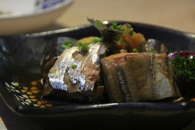 梅子秋刀鱼:鱼不腥气,内脏也处理的很好,就是味道偏淡了,吃过一块就不太想吃了。