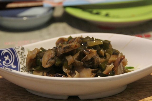 芥末海螺片:一直吃芥末章鱼的这次换个别的吃吃看,芥末不是很冲,海螺片切得不太厚,还可以吃吃。