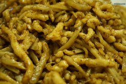 烹饪方法和怪味鱼条差不多,不过……懒得吐鱼刺的人,就选择鸡丝吧。