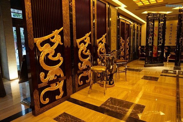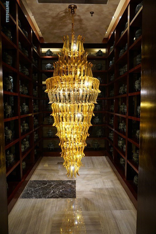 中间一个吊灯,从屋顶垂到地上,富丽堂皇