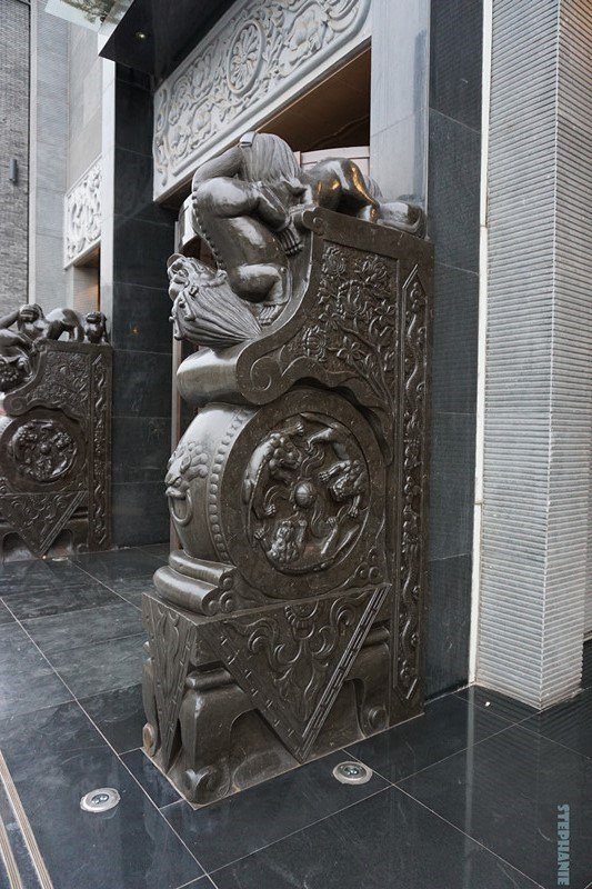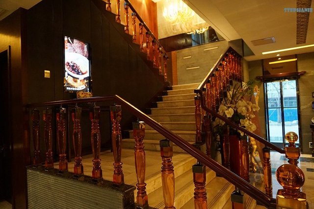 大厅里面有部分陈列品。这个瓶在我们坐的桌子旁边,有半人多高,用玻璃罩保护起来了。很珍贵的样子。