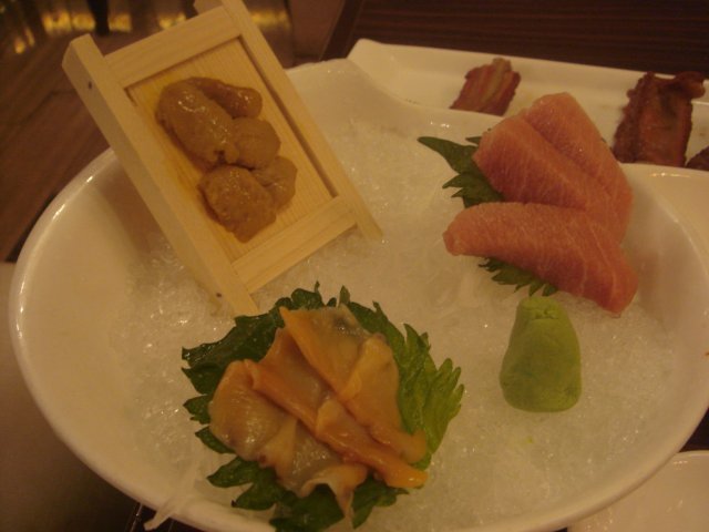 吃日式烧肉,刺身是不可或缺的,要了赤贝、海胆和加吉鱼刺身。