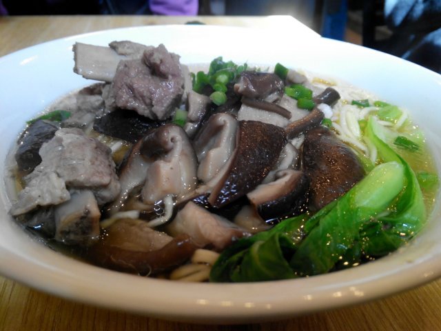 每次不是肥肠面就是肉酱面,加上进口果汁,听搭配的。这次去新添了新口味,有香菇鸡肉排骨面和酸菜面,本着猎奇的原则点了香菇鸡肉的,里面鸡肉三块,排骨两块,但是肉质都还不错啦,配上高汤和小青菜还有他家一如既往的筋斗弹面,还是挺搭的,吃腻了香辣麻咸口味的吃吃这种香醇浓郁型的也不错,而且连汤带面吃完还挺撑的,倒是同去的姑娘点了肉酱面以后觉得分量好像比以前略少了些,不过所幸味道还是不错哒,但是分量小了价位可以点的没降,还少有小幅提升啊,没办法,店火起来涨价也还是有人排队吃啊~~