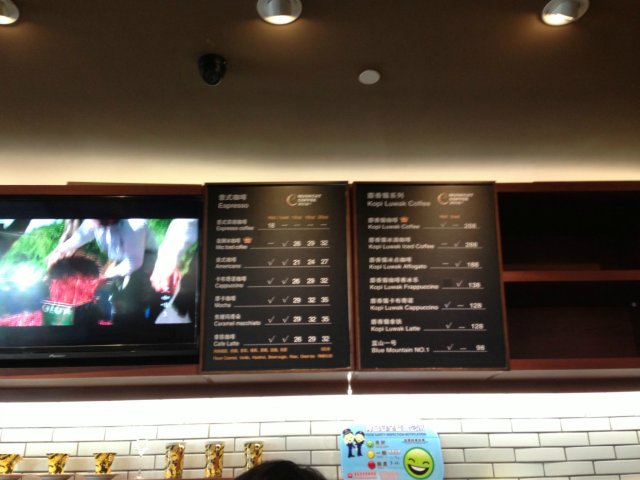 店内的咖啡其实大部分都是可以选择的。我要了冰摩卡,最贵那个,哈哈!到手没有马上喝,打包回家的,到家打开喝了一口,有点失望啊!应该没有放糖的感觉,有点苦,而且咖啡并不上乘,好的咖啡其实是清咖最能喝出感觉,但是他又有加奶,所以真心不爱啊!店员做的时候应该问下顾客是否要糖吧?很多人喝不来不加糖的咖啡的啊!