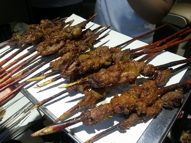 红柳肉串10元3串,价格适中。红柳枝颜色确实是红色的,羊肉很新鲜,软嫩多汁,吃着很香,肉串配啤酒绝对是绝配。