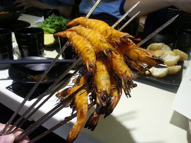 虾很新鲜,个头也挺大的,烤好的虾颜色很漂亮,外皮烤的都酥脆了,基本可以连皮吃。虾肉很紧致,鲜美清甜,非常好吃。