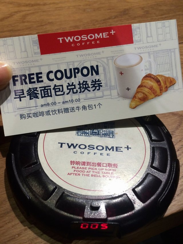 点单咖啡还送了一张早餐优惠券 早餐时间任意点咖啡送羊角包