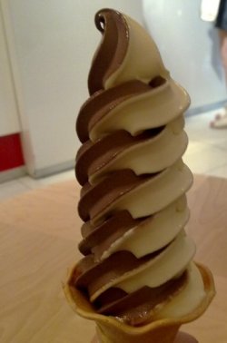 他家的摩天火炬冰激凌倒是口味不错,奶味很浓郁,尤其喜欢双色的,可以同时吃到两种口味,就是这个很容易倒啊!吃的时候要小心的,冬天貌似不供应的。