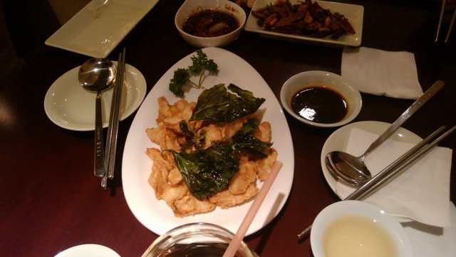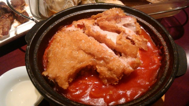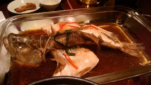 跟朋友们一起去的,主要是刚在星美看完电影就直接过来了.点了一条清蒸鱼,女生们喜欢的甜口的蕃茄鸡排,还有炸的排骨,石锅牛肉什么的,菜品的价格真心的不便宜,一道菜最便宜的也要四五十块钱,特别是鱼,七八十元有没有?但是相当的新鲜哪,鱼肉嫩滑鲜美,也算是物有所值了.饭后又点了女生们喜欢的布丁,相当好吃了.