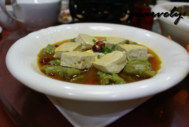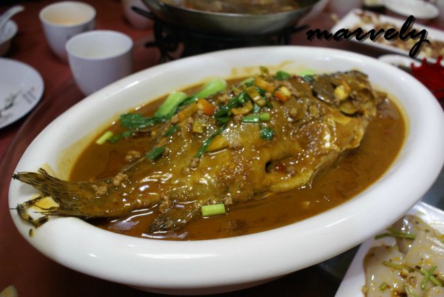 其实我们今天就是来吃这道菜的。都说看臭鳜鱼正不正宗,就要先闻闻看臭不臭,这条鱼刚被端进包厢的时候,那股臭味马上就弥漫开来了,我们不得不马上打开窗户。店主说,这条鱼是被腌制过40天才能被用来烹制的。虽然闻起来很臭,但是吃在嘴里的感觉很鲜香,鱼肉就想蒜瓣一样的一瓣一瓣的,极嫩的。盘子里的汤汁,也是很鲜美的,这汤汁是没有臭味的,把鱼肉蘸着这个吃,味道愈加好了一层。