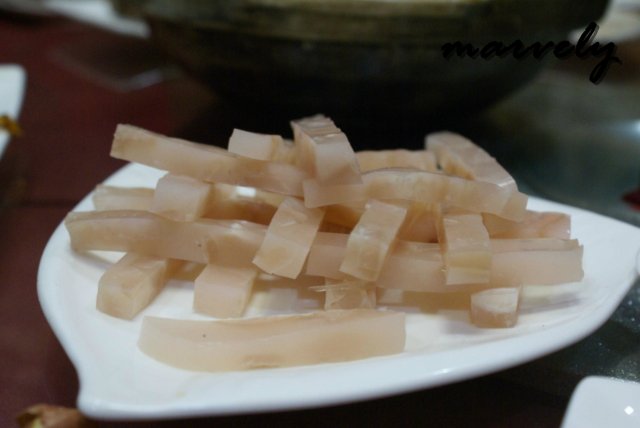 猪皮做的肉冻,挺Q弹的,不过店家提供的蘸酱不给力,既无法提升皮冻的鲜味,也没能让皮冻变得更美味,后来店主说,是店员上错了蘸料。