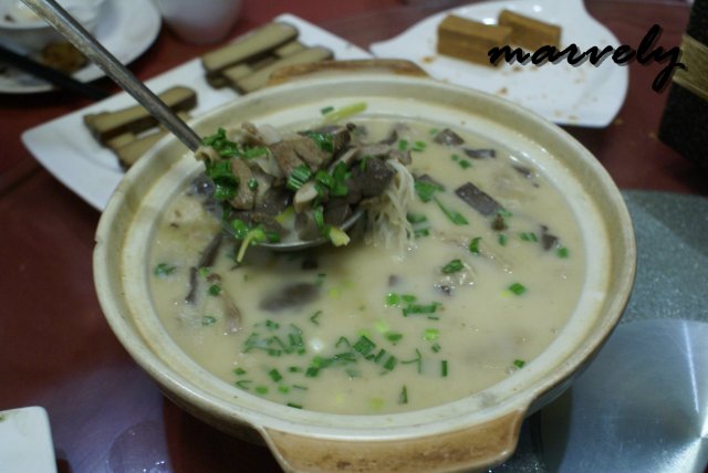 名副其实的杀猪菜,汤里全部都是各种猪杂,而各种猪杂混合后所带来的鲜美,怎是一个鲜字可以了得,这道菜里,汤是主角,各种猪杂包括金针菇,都只能沦为配角了。