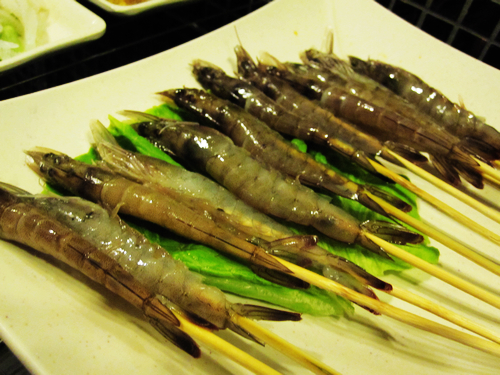 基围虾25元/10串,虾涮出来甜甜嫩嫩的,爱!