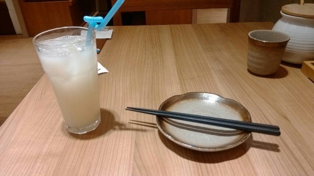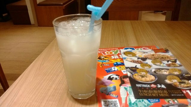 可尔必思头一次喝,有点像乳酸的饮料,味道还不错。猪排套餐包括一份猪排,一大份高丽菜,一碗味噌汤,还有一碗米饭。