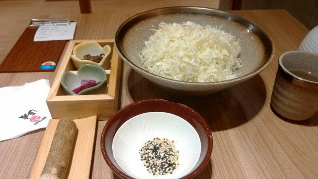 猪排炸的特别松脆,味道也好,切成小条放在一个滴油网上,时间长了也不会软掉,打十分也不为过,高丽菜都是切成了非常细的丝,这个一定要配上白芝麻酱吃,风味才好,味噌汤不是太喜欢,就喝了一口,米饭还不错,松软可口,不限量的可以添加