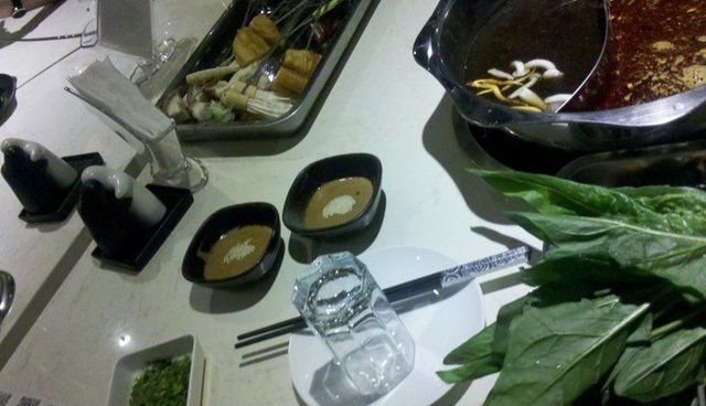 锅底有辣的,有番茄的。我喜欢辣的,吃起来跟火锅差不多,比较爽。而且辣锅开得快,吃得多一点。哈哈。