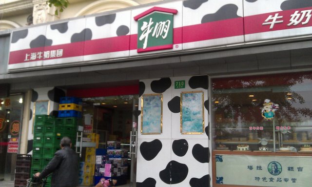 里面卖各种牛奶和各种自己产的小点心 面包等