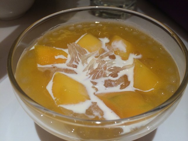 杨枝甘露,28米。闺蜜的推荐,冒冒似乎不太感冒。芒果肉、柚子果肉搭配炼奶和大颗软糯的西米粒,不会太甜腻,很清爽的口感。