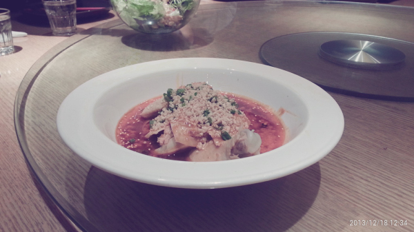 口水鸡,这个量有一些少,看样子半只鸡片成了,里面可以吃到鸡爪子什么的,辣辣的红油让人很有食欲