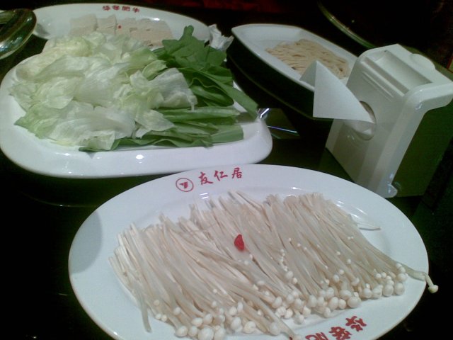 他家有自助小菜,水果台。水果上的不够及时。而且自助台是有时间限制的好象是11:30--13:00。如果去的完了,火锅吃完就没有水果吃了。这一点比较不好。一般周末去吃饭也要12点半了,基本就吃不到水果。