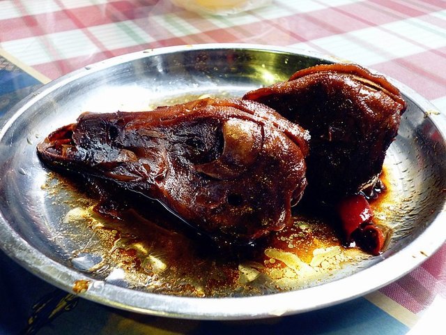 【鸭脑壳】我们两个都没吃,看上去似乎不错,头盖骨砍开了的(我描述的好残忍),很方便食用~