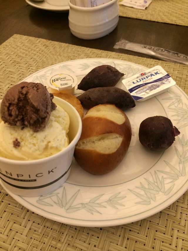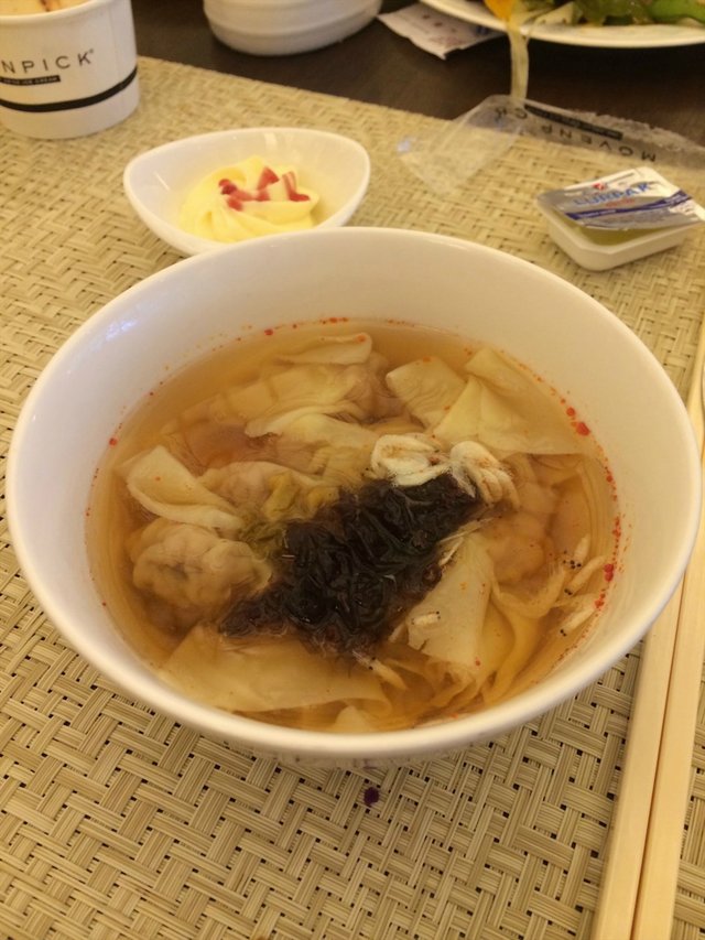 后来吃了点紫薯,还有鱼片,还有酸辣汤。只能靠这些来充饥 发现他们有类似麻辣烫和小馄饨供应。就要了点小馄饨。但是汤头一点味道也没有。加了料也不怎么好吃。小馄饨几乎都是僵掉的 还听到服务生说,现在一直买一送一,羊毛出在羊身上,质量会好伐啦。连自己人都这样说了。。。