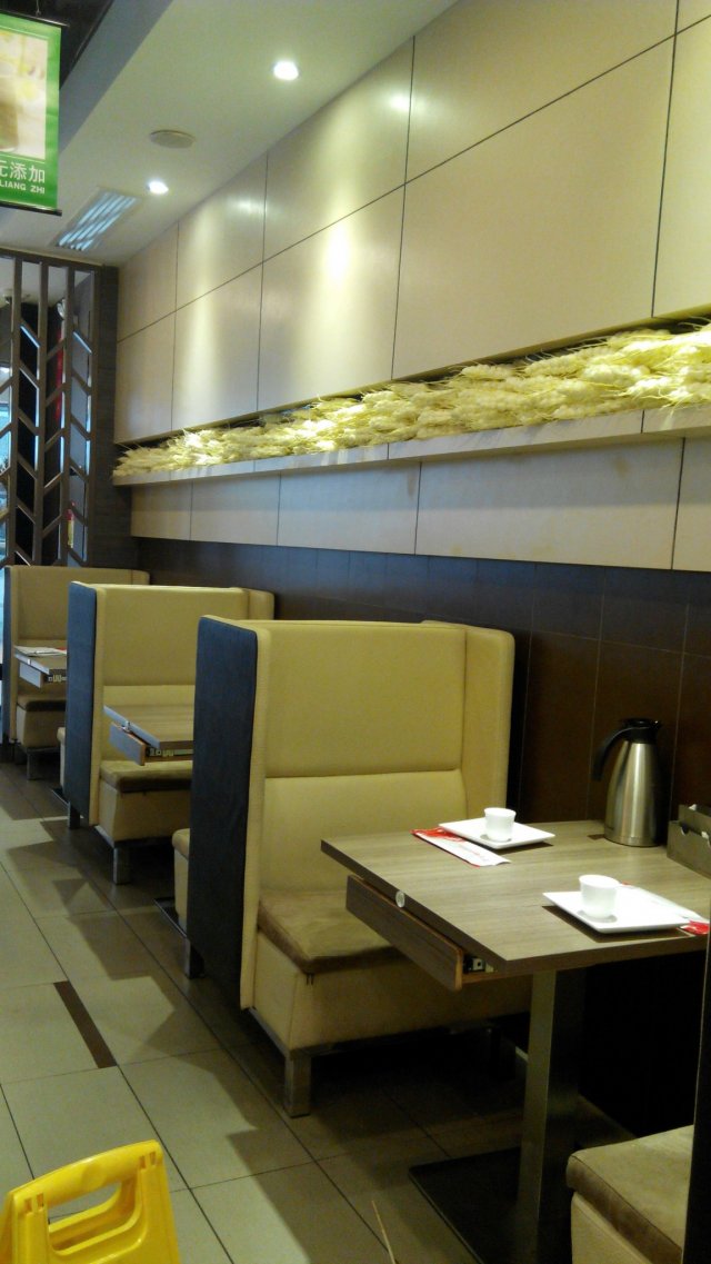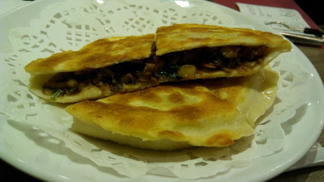 这家店在大悦城,每次去的时候都看见好多排队的人,过了饭点,人依旧很多,但是跟旁边的外婆家比起来还是少的多,索性就等吧,等候的时候门口有椅子,还提供爆米花,所以也还没那么难熬,里面很干净明亮,两人座的位置也是类似沙发靠背的,比较舒服,安全性和私密性也较好,要了朋友推荐的牛肉饼,据说去晚了就卖光买不到,没想象中好吃,但是味道还行,外面酥酥的,馅儿料也算足,美中不足是里面的洋葱略生,有点儿辣,我喜欢熟透了的洋葱,比较香甜。这个饼是一整张的大饼,切成四份,吃的时候容易掉馅儿。要了过油肉小花卷,感觉很特别,这道菜的想法也很独特,把原本应该为主食的花卷变成了菜的一部分。里面的肉和花卷口感都很好,花卷个头均一,应该是过了油的,入味又好吃。炒猫耳朵,小小的猫耳朵很入味,不过分油腻,口感刚好。据说他们家有生日长寿面,超大碗的,噱头很足,还没机会尝试。