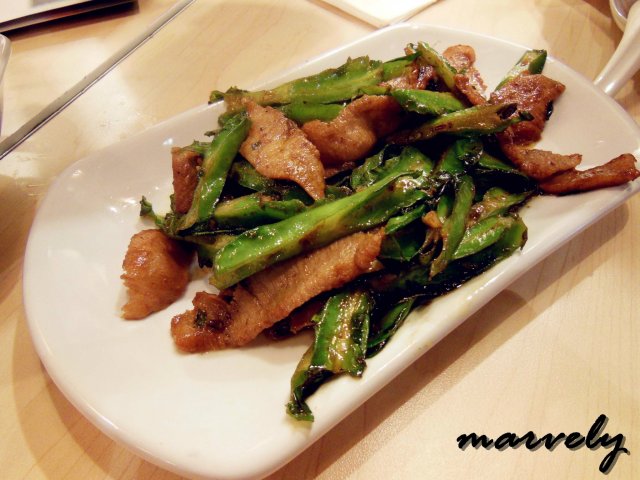 一开始我还以为盘子里的龙豆是秋葵呢,不过吃口上除了和秋葵一样嫩之外,并没有秋葵里的那种溶液,店员解释,龙豆俗称四角豆,是长在热带雨林里的一种植物,它的横切面就像是一个英文字母“X”,因为它的营养价值高,所以也被称为“绿色金子”。不提龙豆的营养成分,它的口感的确非常清脆细嫩,我们对它的兴趣完全超过了也很甜嫩的猪颈肉了。
