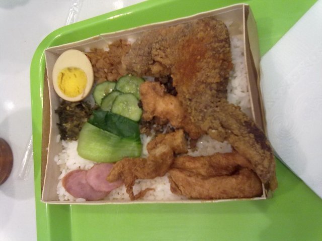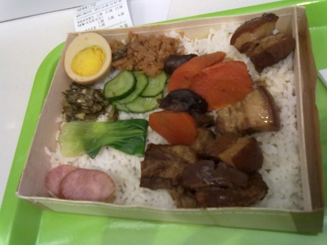 饭盒是用木头围起来的,倒是很有台湾便当的感觉,不过觉得相当不环保啊,而且要是汤汁多的话,会漏出来的说。
