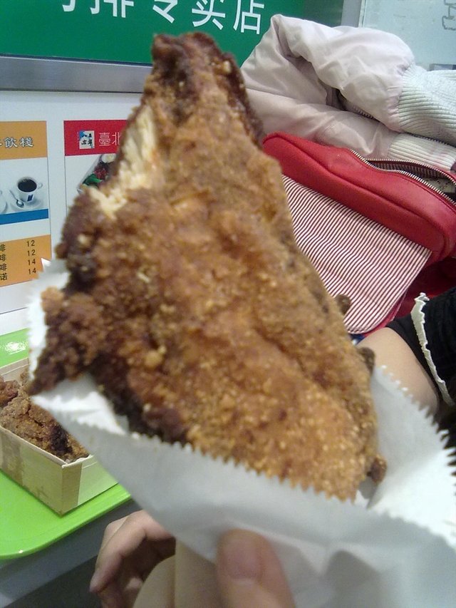 爆浆鸡排很大个有木有,吃了一份饭再来吃这个确实很挑战啊喂,即使一人一口也次不完了T-T里面是酱汁,咬一口真的会爆出来的感觉,分分钟可以当主食吃的节奏啊。
